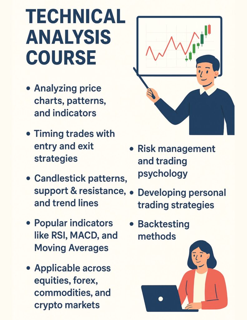 By taking a Technical Analysis Course in Delhi, students understand how to read market mindset, identify entry and exit points, and create trading strategies supported by actual data instead of intuition.