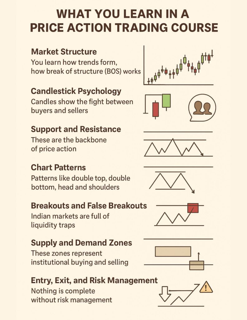 One of the best investments a trader in India can have is a course in price action trading. Price action helps you read the market clearly, take accurate trades and avoid unnecessary losses. With proper training, discipline and practice, anyone can master price action and trade successfully in the Indian market.