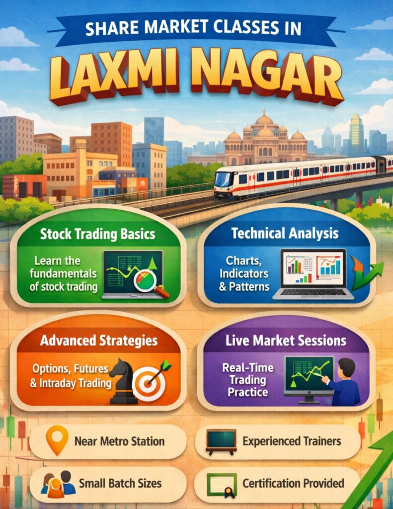 Whether you are a beginner or someone who is struggling with losses, joining professional share market classes in Laxmi Nagar can help you transition from confusion to clarity. With proper guidance and practice, trading and investing can become excellent wealth-creation tools.